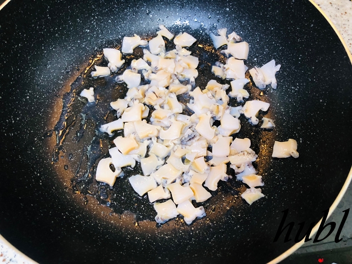 예열된 팬에 전복을 먼저 볶아주시면 됩니다