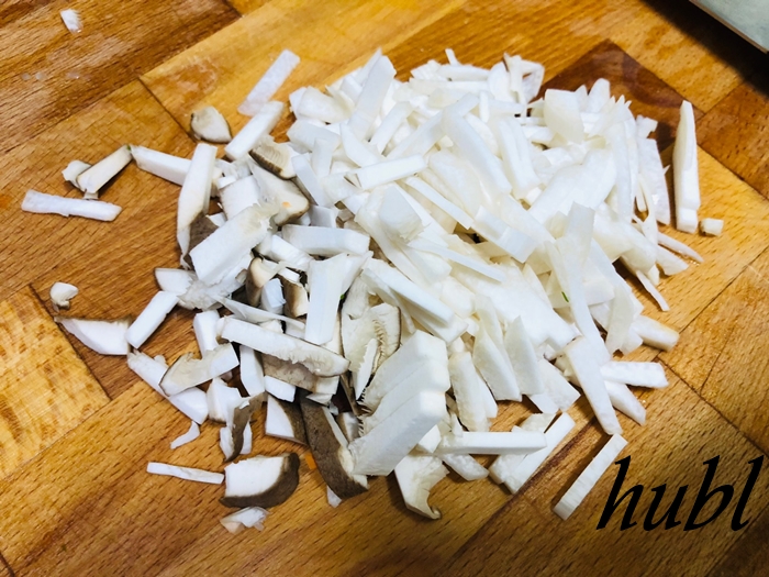 새송이 버섯은 얇고 길쭉하게 썰었습니다