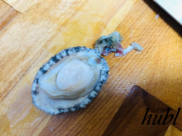 이렇게 분리한 전복을 내장을 손으로 제거 후