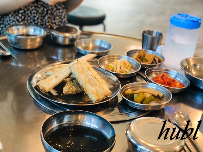 기본 반찬으로는 김치, 어묵볶음, 콩나물, 장아찌