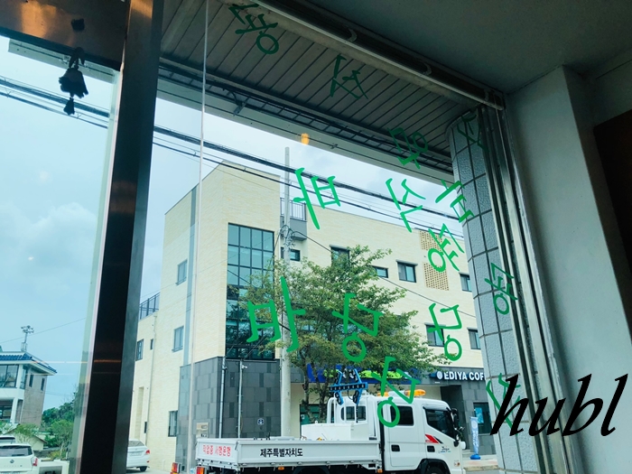 유리창의 바굥글자인 것 같습니다
