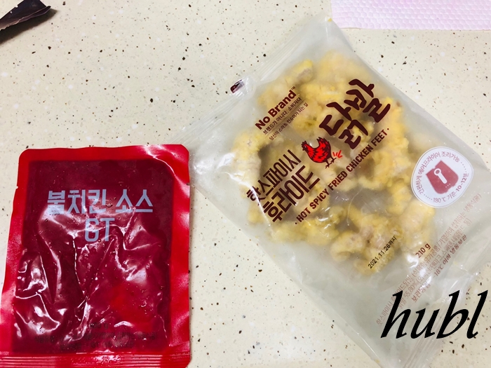 [노브랜드]초간단 에어프라이어 활용<핫스파이시 후라이드 닭발>먹어본 후기(식품후블)👏
