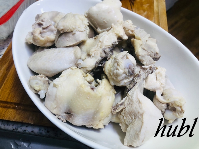 한번 데친 닭을 건져서 준비해줍니다