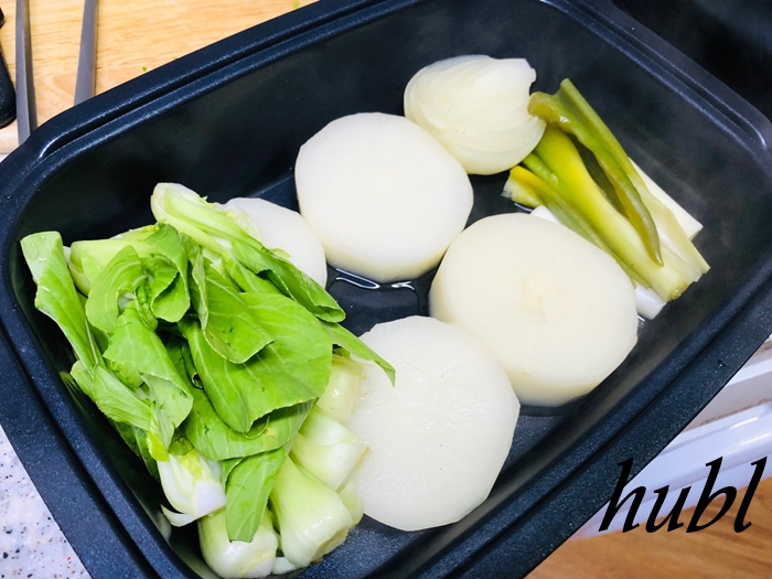 이제 멀티쿠커에 익은 무와 고추,