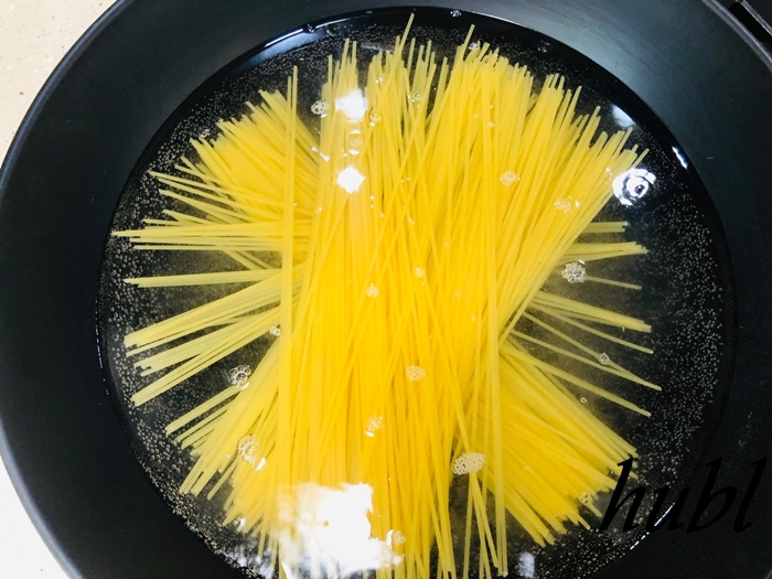 이제 물이 끓게 되면 소금을 한 숟갈 넣어서 면도 풀어주세요