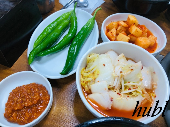 기본찬은 쌈장, 오이 고추, 배추김치, 깍두기로
