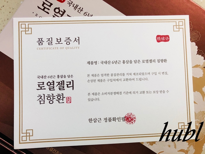 안쪽에는 품질보증서가 있어 믿고 드시기